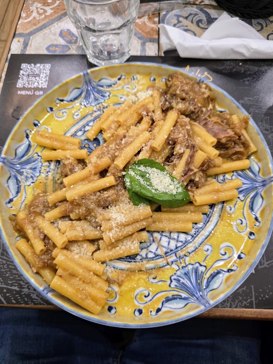 I found this place from tiktok recommendations and after seeing the reviews. Food was AMAZING! one of the few if not the only place that you can get fresh pasta in the historic centre of Naples. I got the orecchiette with truffle pork sausage. I love truffle and it didnt get let down! The pork pieces were nice and flavorful (even though im not a big fun of pork) and the truffle was definitely there!!! Huge portion i'd say. I went extra and got the ragu meatballs, they were tender and had a lot of sause but i didn't like them so much, im used to meatballs with herbs and spices, these were toned-down flavour wise. I had to take my left over food take away as I ordered too much. I also got a shot of limoncello, it was super strong and lemony! Hight recommend this place, value for money for sure and super nice dishes! Keep up the good work people!